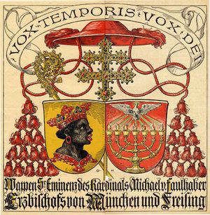 Wappen Kardinal Faulhabers. Der siebenarmige Leuchter auf dem linken Schild verweist auf seine Tätigkeit als Professor für das Alte Testament. (Erzbischöfliches Archiv München)