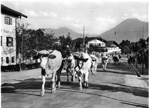 Almabtrieb in Tegernsee, um 1939. Postkarte von Theo Ostermann. (Bayerische Staatsbibliothek, Bildarchiv port-002275)