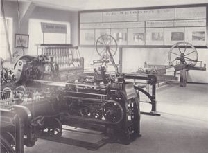 Saal zur Entwicklung der Spinnerei. Ausstellungsraum des Deutschen Museums 1933. Abb. aus: Das Bayerland 44, (1933), 288. (Bayerische Staatsbibliothek, Bavar 198-t)