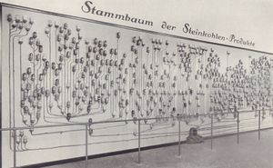 Stammtafel der Steinkohleprodukte. Ausstellungsinszenierung im Deutschen Museum München 1933. Abb. aus: Das Bayerland 44, (1933), 266. (Bayerische Staatsbibliothek, Bavar 198-t)