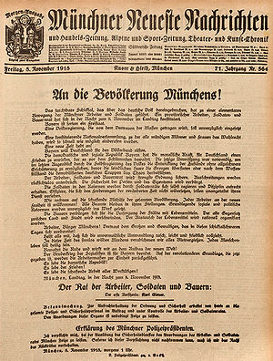 Im Zuge der Revolution proklamierte Kurt Eisners (USPD, 1867-1919) am 8. November 1918: "Bayern ist fortan ein Freistaat!", doch war darin auch von der "Republik" die Rede. In den Medien und von den amtlichen Stellen wurde zunächst überwiegend die moderne Vokabel "Volksstaat" verwendet. Im Deutschen Reich existierte ca. von November 1918 bis Februar 1919 faktisch eine Sprachregelung, die besonders vom Staatssekretär und späteren Reichsminister des Innern Hugo Preuß (DDP, 1860-1925) betrieben wurde, nach der "Republik" vor allem das Deutsche Reich, "Freistaaten" dagegen seine Bestandteile, die ehemaligen deutschen Bundesstaaten, meinte. Festgeschrieben wurde diese Regelung im Gesetz über die vorläufige Reichsgewalt vom 10. Februar 1919. Unter direktem Bezug darauf nahm Bayern in seinem am 20. Februar 1919 im Kabinett verabschiedeten Staatsgrundgesetz das Wort "Freistaat" auf. Als Staatsname offiziell festgelegt wurde es allerdings erst auf Initiative des Ministerpräsidenten Johannes Hoffmann (MSPD, 1867-1930), der es gleichzeitig als Kampfbegriff gegen die "Diktatur" der Räterepublik verstand und eine amtliche Zeitung mit dem Namen "Der Freistaat" herausgab. Obwohl fast alle deutschen Länder das Wort "Freistaat" in ihre Verfassungen aufnahmen, spielte es nach 1919 keine Rolle im öffentlichen Bewusstsein mehr.