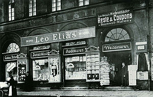 Das Kleidergeschäft von Leo Elias in der Münchner Blumenstraße. (Foto: 1910, Stadtarchiv München JUDAICA-Fotos_5-0001-ELI)