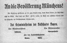 Im Kontext der Novemberrevolution 1918 entfaltete die Vokabel "Volk" ihre reiche ideologische Fracht mit spezifischer programmatischer Tendenz: Überwindung der überkommenen politisch-sozialen Herrschaftsverhältnisse, Neugestaltung zugunsten und unter Mitwirkung der bisher benachteiligten oder ausgeschlossenen Massen in allen Bereichen und auf allen Ebenen von Staat und Gesellschaft - all das schwang in diesem leitmotivischen Begriff des 'Volkes' mit und konnte nach Bedarf aus ihm abgerufen werden. Nirgendwo wird der programmatisch-propagandistische Appell dieser zentralen Kategorie der revolutionären Rhetorik deutlicher als in dem hartnäckigen Pathos, mit dem die Regierung Eisner in ihren Verlautbarungen als "Regierung des Volksstaates Bayern" firmierte (z. B. Bauer, Die Regierung Eisner, Dok. 5, 6, 11, 13 , 20, 21).