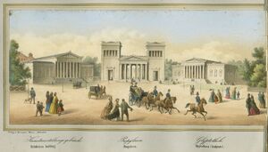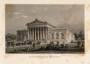 Glyptothek, Stahlstich von Johann Gabriel Friedrich Poppel (1807-1882), 1841. (bavarikon) (Bayerische Staatsbibliothek, Bildarchiv port-017488)