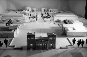 Modell des Königsplatzes mit Parteibauten und Ehrentempeln, 15. März 1934, vor den NS-Baumaßnahmen. (Bayerische Staatsbibliothek, Bildarchiv hoff-8909)