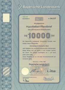 6 ½-prozentiger mündelsicherer Hypotheken-Pfandbrief über 10.000 DM, 1987. (Bayerisches Wirtschaftsarchiv, S39)