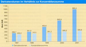 Hand in Hand mit der Globalisierung wuchs die Bedeutung des Geschäfts mit neuen Finanzprodukten. Schon ab Mitte der 1980er Jahre war der Handel mit sog. Derivaten aufgeblüht. Ursprünglich als Terminkontrakte zur Absicherung von Währungsschwankungen im internationalen Finanzgeschäft entstanden, entwickelten sich diese verbrieften und damit handelbaren Forderungen immer mehr zu einem Spekulationsobjekt im hochkomplexen Wertpapierbereich. Dank der sog. Gewährträgerhaftung, die der Landesbank als öffentlich-rechtlichem Institut das Kreditgeschäft durch günstige Refinanzierungsmöglichkeiten erleichterte, erhielt sie von den Ratingagenturen stets exzellente Triple A-Ratings und damit Zugang zu den besten Adressen des internationalen Finanzmarktes beim Handel von diversen Geld- und Kapitalmarktpapieren bzw. der Platzierung entsprechender eigener Produkte.