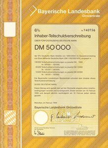 6-prozentige Inhaber-Teilschuldverschreibung über 50.000 DM, 1994. (Bayerisches Wirtschaftsarchiv, S39)