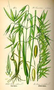 Hafer (Avena sativa). Abb. aus: Prof. Dr. Otto Wilhelm Thomé: Flora von Deutschland, Österreich und der Schweiz. (Gemeinfrei via Wikimedia Commons)