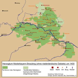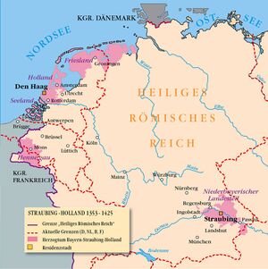 Dorit-Maria Krenn, Niederbayern-Straubing-Holland, Herzogtum (1353-1425), publiziert am 30.11.2009; in: Historisches Lexikon Bayerns, URL: https://www.historisches-lexikon-bayerns.de/Lexikon/Niederbayern-Straubing-Holland,_Herzogtum_(1353-1425) (21.12.2025)
