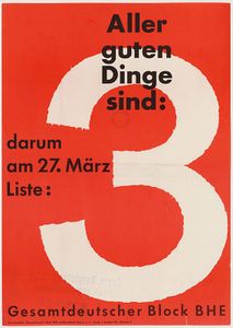 Wahlplakat des Bundesverbandes des BHE in Bonn zur Bundestagswahl 1957. Druck bei Greve-Druck, Berlin. (Bayerisches Hauptstaatsarchiv, Plakatsammlung 25828)