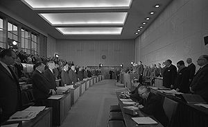 Wahl des bayrischen Ministerpräsidenten Hans Ehard (CSU, 1887-1980) zum Bundesratspräsidenten am 27. Oktober 1961. (Bundesarchiv, B 145 Bild-F011691-0010 / Unterberg, Rolf; Steiner, Egon / CC-BY-SA 3.0)