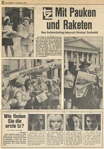 Die "tz-Hostessen" verteilten im Münchner Stadtgebiet am 18. September 1968 die Erstausgabe der tz. Bericht, 19. September 1968, 5. (tz)