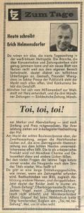 Grußwort von Chefredakteur Erich Helmensdorfer (1920-2017) in der ersten Ausgabe der tz vom 18. September 1968, 2. (tz)