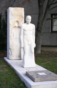 Im Jahr 2006 wurde in Waldkraiburg ein Mahnmal der Vertreibung eingeweiht. Geschaffen hat es der aus dem schlesischen Deutsch-Piekar (Polen) stammende und in Waldkraiburg beiheimatete Bildhauer Matthäus Rutkowski (geb. 1975). Das Mahnmal zeigt eine aus einem Monolith herausgearbeitete Figur und ist aus Warthauer Sandstein aus Schlesien gearbeitet. Es stellt die Entwurzelung der Vertriebenen aus der Heimat dar. (Foto: Stadtarchiv Waldkraiburg)