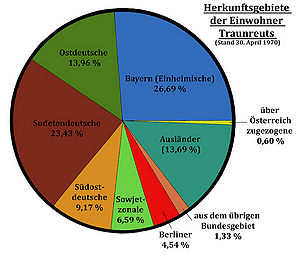 Die Bevölkerungsstruktur der Vertriebenengemeinden war seit ihrer Gründung einem ständigen Wandel ausgesetzt: In den 1950er Jahren kamen vorwiegend Zuwanderer aus dem bayerisch geprägten Umland und Spätaussiedler aus Rumänien, in den 1960er Jahren folgten zahlreiche Gastarbeiter aus Südeuropa und vor allem der Türkei und ab den 1980er Jahren wieder Spätaussiedler aus Polen, Rumänien und der Sowjetunion bzw. ihren Nachfolgestaaten, die meist nur rudimentäre Deutschkenntnisse hatten.