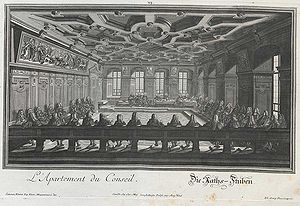 Augsburger Ratsverfassung (1548/55-1806). (Gestaltung: Stefan Schnupp; Angaben nach dem vorliegenden Artikel von C. Paulus u. Peter Geffcken, Rat. Ratsverfassung bis 1806, in: Augsburger Stadtlexikon, Augsburg 2. Auflage 1998, 735 f.)