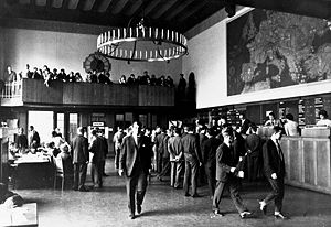 Börsensaal in München am Maximiliansplatz 8, 1955. (Bayerisches Wirtschaftsarchiv S31)