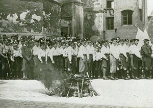 Ebenfalls seit März 1933 organisierte die HJ mehrere Bücherverbrennungen, die sich zunächst auf lokale Aktionen wie die "Säuberung" von Schulbibliotheken konzentrierten. Ab Mai 1933 kam es dann zu größeren Initiativen. Neben Kampagnen in der preußischen Rheinprovinz (19. Mai) und in Baden (17. Juni), gehörte dazu auch eine umfangreiche Aktion in Bayern um den 7. Mai.
