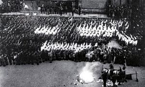 Nach der Machtergreifung durch die Nationalsozialisten wurden ab März 1933 durch verschiedene Gruppierungen Bücher verbrannt. Nachdem zunächst Sturmabteilung (SA) und Schutzstaffel (SS) eine Reihe von spontanen Verbrennungen durchführten, erlangten v. a. die Hitlerjugend (HJ) und die Deutsche Studentenschaft (DSt) mit groß angelegten und zentral organisierten Aktionen besondere Bedeutung.