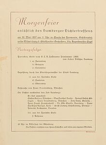 Das Programm der Morgenfeier des Bamberger Dichterkreises vom 30. Mai 1937. (Stadtarchiv Bamberg, BS (T) + 679-3 a)