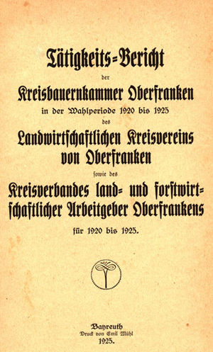 Oliver Braun, Bauernkammern, 1920-1933, publiziert am 04.09.2006; in: Historisches Lexikon Bayerns, URL: <https://www.historisches-lexikon-bayerns.de/Lexikon/Bauernkammern,_1920-1933> (21.12.2025)
