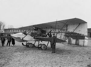 Otto-Doppeldecker (Militärtyp) in Oberschleißheim. Zweisitzig, mit "Flugboot". (Bayerisches Hauptstaatsarchiv, Kriegsarchiv BS (Negative Allg. Serie) III F 8, 36 g (8228))