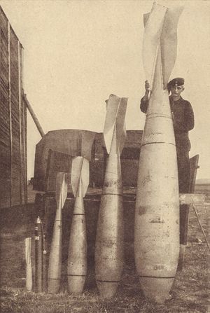 Infanterie-Flieger beim Abwerfen einer Bombe. (Bayerisches Hauptstaatsarchiv, Kriegsarchiv BS-D 4662)