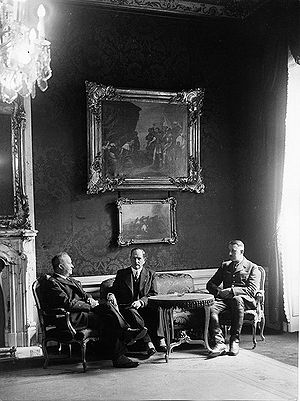 Der spätere Reichsstatthalter in Bayern Franz von Epp (1868-1947) und Hermann Esser (1900-1981) bei einem Aufenthalt in der Bayerischen Gesandtschaft Berlin im März 1933. Links im Bild vermutlich der Gesandte Franz Sperr (1878-1945). (Bayerische Staatsbibliothek, Bildarchiv hoff-7715)