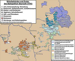 Nach dem Übergang der Markgraftümer Ansbach und Bayreuth an die Krone Preußen 1791 erfolgte unter der Regie des Dirigierenden Ministers Karl August von Hardenberg (1790–1798) eine durchgreifende Neuordnung des Behördenaufbaus. Sie war geleitet vom modernen Flächenstaatsprinzip mit geschlossenen Verwaltungsbezirken und klaren Zuständigkeiten sowie dem Grundsatz der Trennung von Justiz und Verwaltung auf allen Ebenen nach französischem Vorbild. Die getrennte Verwaltung der beiden Fürstentümer wurde beibehalten. Die preußische Verwaltungsorganisation blieb auch nach dem Übergang des Fürstentums Bayreuth an Frankreich 1807 bis zur Übernahme durch das Königreich Bayern 1810 bestehen.