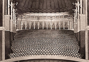 Der Zuschauerraum des Bayreuther Festspielhauses um 1904. Abb. aus: Hans von Wolzogen, Bayreuth, Berlin ca. 1904, nach S. 32. (Bayerische Staatsbibliothek, Mus. Th. 5184 nt)