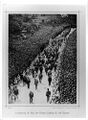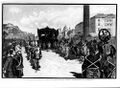 Graphik des Leichenzuges zur Beisetzung Ludwigs II. von 1886. Die Geistlichkeit schritt vor dem Leichenwagen. Dahinter zogen die Familienmitglieder des Hauses Wittelsbach und die Vertreter der deutschen Bundesfürsten an der Bevölkerung vorbei. (Bayerische Staatsbibliothek, Bildarchiv port-012763)