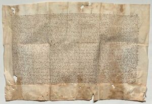 Sogenannter Berchtesgadener Landbrief vom 22. Februar 1377. In der Urkunde bestätigt Erzbischof Pilgrim II. von Salzburg (reg. 1365–1396) Propst Ulrich I. (reg. 1377-1384) und dem Konvent von Berchtesgaden den Rechtsanspruch der Berchtesgadener Grunduntertanen auf die Erbleihe ihrer Güter. (Bayerisches Hauptstaatsarchiv, Fürstpropstei Berchtesgaden Urkunden 137/II)