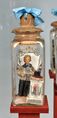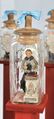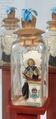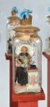Fürstpropst Joseph Conrad von Schroffenberg (links) und sein aus sieben Chorherren bestehendes Stiftskapitel: Anna Maria Theresia Fembacher, Ehefrau des Berchtesgadener Stiftsorganisten, fertigte zu Ende des 18. Jahrhunderts die nur wenige Zentimeter großen, mit Stoff bekleideten Wachsfiguren, die in Glasflaschen – als so genannte „Eingricht“ – präsentiert wurden. (Fotos: Museum Schloss Adelsheim)