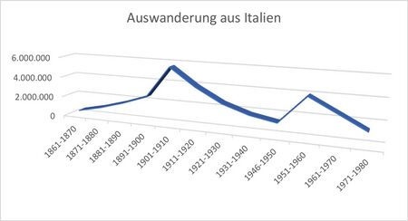 Insgesamt verließen zwischen 1861 und 1980 fast 29 Mio. Menschen ihr Land, von denen lediglich 10 Mio. zurückkehrten. 3,35 Mio. Migranten führte ihr Weg nach Deutschland, zwei Drittel von ihnen verblieben dort.