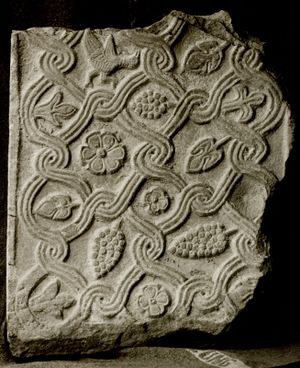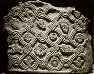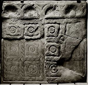 Fragment eines Flechtbandsteines, vermutlich vom Sockel einer Chorschranke. 8. ...
