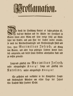 Besitzergreifungspatent König Max I. Josephs von Bayern für die ...