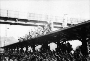 Menschenansammlung vor dem Bürgerbräukeller in München anlässlich der Wiederbegründung ...