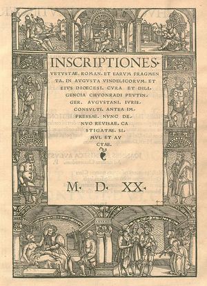 Frontispitz mit allegorischer Darstellung der Universität Würzburg, die zu ...