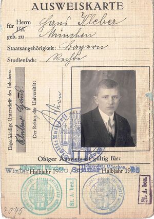 Ausweiskarte des bayerischen Staatsangehörigen Hans Kleber (1907-1986) für die ...