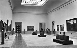 Blick auf den Haupteingang des durch Kriegseinwirkung stark beschädigten ...