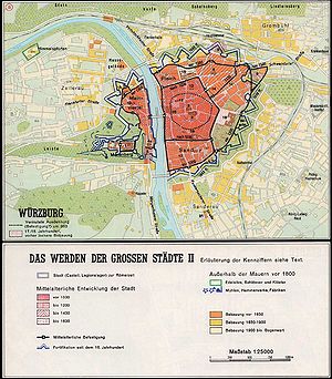 Die Marienkapelle in der Stadtansicht von Würzburg aus der ...