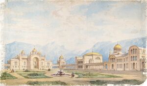 Entwurf zum Byzantinischen Projekt von Schloss Linderhof. Gesamtansicht mit ...