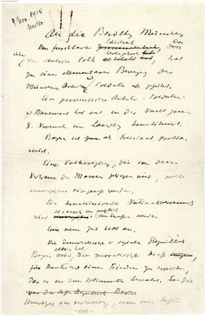 Entwurf der ersten Seite von Kurt Eisners Freistaatsproklamation vom ...