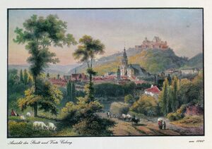 Schloss Schwarzenberg. Stich von Matthäus Merian (1593–1650), 1648. (gemeinfrei ...