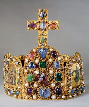Reichskreuz, Heilige Lanze und kreuzförmiger Reliquienbehälter. Abb. aus: Wie ...