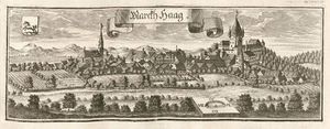 Das Wappen der Grafen zu Haag. Der Schimmel auf ...