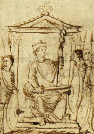 Darstellung von König Pippin II. (li.) und seines Sohnes ...