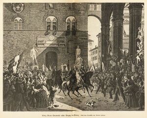 Die Vertreter der Münchner Bürgerschaft, begleitet von Kriegsvolk Ausschnitt ...