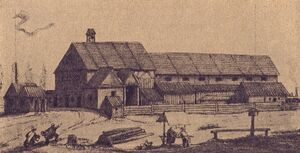 Vorläufiges Stationsgebäude der München-Augsburger Bahn 1839 bis 1847. Abb. ...